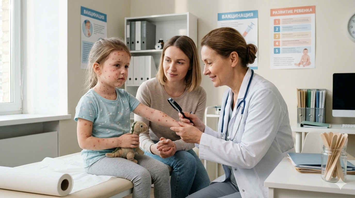 Одно из наиболее распространенных осложнений — бактериальная инфекция кожи. Когда ребенок расчесывает зудящие высыпания, на коже появляются микротравмы, через которые могут проникнуть бактерии, вызывая воспаление и нагноение. Инфицированные высыпания могут требовать лечения антибиотиками и более длительного периода восстановления.