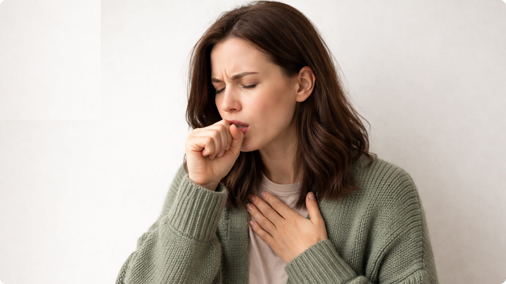 ГЭРБ — частая, но неочевидная причина затяжного, хронического кашля. При забросе кислого содержимого желудка в пищевод происходит раздражение кашлевых рецепторов. Затяжной кашель может быть единственным признаком при отсутствии классической изжоги. Характерно усиление после еды, в положении лежа, при наклонах туловища. Дополнительно беспокоят осиплость голоса, першение, ощущение кома в горле.